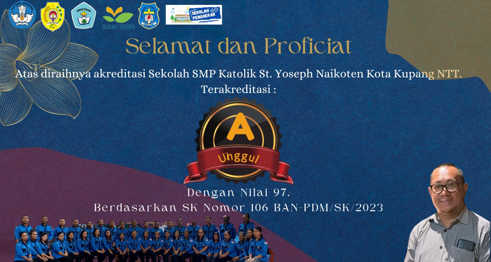 KUPANG, mediantt.com – SMP Katolik Santo Yoseph Naikoten meraih hasil akreditasi A Unggul dengan nilai 97. Hasil ini berdasarkan Surat Keputusan Badan Akreditasi Nasional, Nomor 106 BAN-PDM/SK/2023.